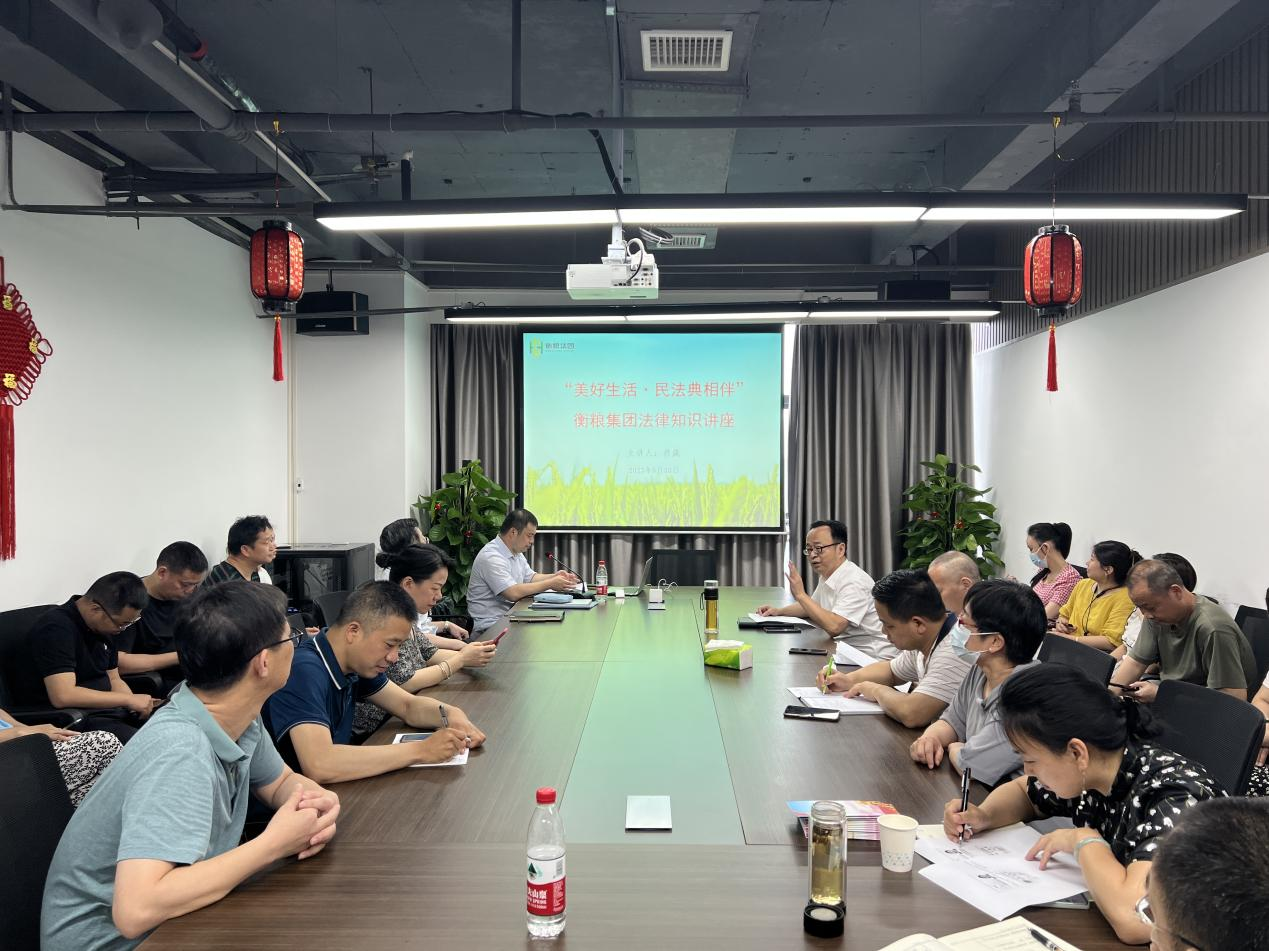 今年5月是我國(guó)第三個(gè)“民法典宣傳月”。為進(jìn)一步做好《民法典》普法宣傳工作,切實(shí)加強(qiáng)干部職工的學(xué)習(xí)宣傳教育,推動(dòng)《民法典》學(xué)習(xí)宣傳融入企業(yè),走近職工群眾身邊,走入職工群眾心里。5月30日衡糧集團(tuán)開(kāi)展法律知識(shí)講座與2023年“美好生活·民法典相伴”主題黨日活動(dòng)。