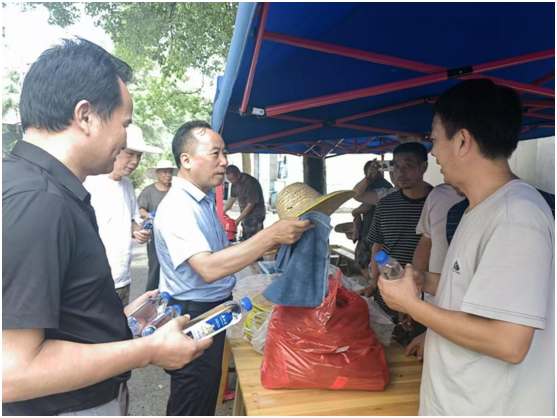 “注意防護(hù),小心中暑!”在臨時休息區(qū),雨民董事長將防暑藥品、草帽、毛巾和礦泉水等防暑物資發(fā)放給農(nóng)戶和裝卸工人,與他們展開親切交談,了解今年的糧食收成情況,詢問其對三塘公司現(xiàn)場服務(wù)的滿意程度等,溫和的笑容和真摯的問候讓農(nóng)戶們倍感親切。