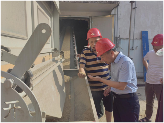 隨后,按照夏糧收購流程,雨民董事長全程考察了現(xiàn)場各個作業(yè)環(huán)節(jié),并聽取了三塘公司今年政府儲備糧輪換收購的情況匯報。在卸糧口,雨民董事長抓取輸送機上稻谷查看今年收購入庫稻谷質(zhì)量,再三強調(diào)必須把好新糧入庫質(zhì)量關(guān),并叮囑現(xiàn)場作業(yè)人員一定要規(guī)范作業(yè),確保人員安全。